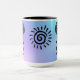 Kokopelli e Símbolo Sol Nativo Americano com um fundo cor-de-rosa pálido, azul e turquesa