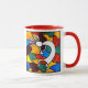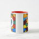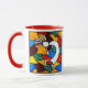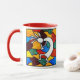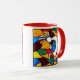 Branco e vermelho 11 oz. Ringer combo mug com uma imagem de vidro manchado, de ambos os lados, da divindade Kokopelli.