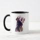 Uma caneca com um retrato silencioso e expressivo de um Labrador Retriever, capturado em tons suaves de aquarela e desenhado à mão pelo artista londrino Sebastian como parte de uma série contínua de retratos de cães.