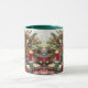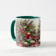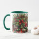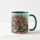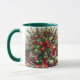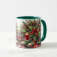 Esta caneca festiva e temática de Natal apresenta uma arranjo de Natal com um laço vermelho e acentos xadrez tartan. Embora mostrada com uma alça verde, várias opções de cores estão disponíveis para personalizar esta caneca de café ao seu gosto.