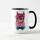Características que deste design um retrato bonito da aguarela de um lama na aguarela espirra do rosa e do azul.