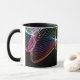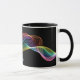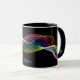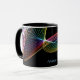 Um desenho abstrato interessante de raios luminosos coloridos fluidos é colocado contra um fundo preto dramático nesta caneca de café. Seu nome está em azul correspondente no centro. Único e atraente!