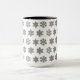 Mantenha-se quente neste inverno com este flocos de neve gelados projetados para caneca. Belos flocos de neve cintilantes design prateados. Adicione seu próprio texto! Personalizável e design transferível!