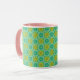Isto é uma caneca. Tem um design sofisticado com uma combinação harmoniosa de amarelo e menta. Tenha um bom dia