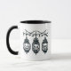 Três lanternas de Halloween (abóbora, morcego e designs de crânio) penduradas em filas como lanternas de papel. Formas simples com contornos limpos.