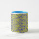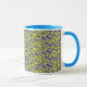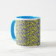 Esta caneca apresenta um padrão abstrato azul e amarelo giro. Se a observarem cuidadosamente, parece que está a mover-se. O design é mostrado em uma caneca de café com estilo ruivo e branco, mas também está disponível em muitos mais estilos e cores de canecas, incluindo canecas de viagem e lindas canecas de fosco.