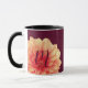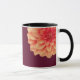 Uma caneca de burgundy elegante. Decorado com lindas flores de dália laranja. Personalize com seu monograma / inicial.