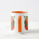 Uma caneca de café com arte de etiqueta de caixa de cozinha antiga em laranjas com flores pequenas. Clique em Personalizar para adicionar seu nome ou mensagem, alterar as cores de fundo e até salvar seu design para mais tarde!