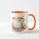 Ponha sua bebida sazonal favorita em estilo com esta caneca de café com tema de outono. Apresentando um belo design de aquarela de uma xícara de café a vapor ou de um café de abóbora, rodeado por abóboras, amoras e folhas de outono, esta caneca acolhedora é perfeita para manhãs de outono estaladiças. O manípulo cor de laranja quente e a cor interior adicionam um toque festivo, fazer-o um presente ideal para amantes do café, entusiastas do outono e qualquer um que desfrute das confortáveis vibrações do outono. Perfeito para casa, escritório, ou como presente pensativo para o Dia de Ação de Graças e para o feriado! Foto tirando sua cerveja favorita dessas canecas alegres, começando seu dia com uma dose de alegria de Natal. É a maneira perfeita de abraçar a estação festiva com cada sopa deliciosa. Peça o seu hoje e adicione um toque pessoal às suas manhãs de férias! 🎁 🌟