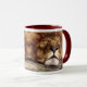 Um presente perfeito para amantes do gato grande e do leão: Uma pintura reproduzida do airbrush de leões de um sono dirige, descansando em um tronco de árvore. Arte animal maravilhosa que fará seu gosto do chá, do café ou do chocolate mesmo melhor e o iluminará acima de sua escritório ou cozinha.