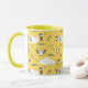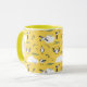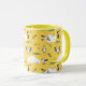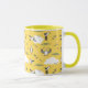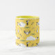 A caneca legal impressa em todos os lugares com um padrão amarelo e branco de bandos de aves marinhas em diferentes posições. Uma caneca divertida para sua casa de praia e casa de água