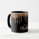 Um fundo preto clássico com brilho fino dourado pingando, pintura pingando. Personalize e adicione um nome e iniciais de monograma. O nome é escrito com um moderno estilo escrito à mão. Letras brancas e ouros.