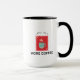 This playful and colorful design features the popular quote "LESS TALK" above a central image, and "MORE COFFEE" below it. The central image is a stylized illustration of a postage stamp in a vibrant coral-red color with scalloped edges. Inside the stamp, there is a charming, polka-dotted mint green mug of coffee or hot chocolate, complete with white marshmallows and steam rising. The design has a cute, flat, and slightly retro aesthetic, making it perfect for anyone who values their quiet morning routine and a good caffeine fix over conversation. The background is a light grey.