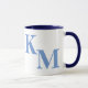 Esta caneca tem apenas duas letras de monograma em letras grandes azuis de girassol em cada lado. Não haverá erro de quem é esta linda caneca! Moderno, elegante e moderno, este design de caneca parece excelente em várias das cores oferecidas, ou simplesmente branco puro.