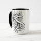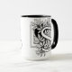 Uma letra "S" muito clara é apoiada por uma armação e por dois ramos de folhas grandes que dão origem a uma colagem.