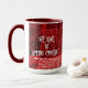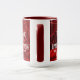 Uma caneca de dois tons com interior vermelho e branco e manípulo, impressão de retalhos vermelho com palavras "Nós erguemos levantando outros" de Robert Ingersoll. Um belo lembrete enquanto estava ocupado na cozinha! presente de excelente para um amigo cristão!