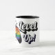 Level up your morning. Level up your pride. This LGBT rainbow pride gaymer mug is built for queer players who fuel every session with caffeine and wear their identity just as proudly as they play. A bold tiger paw grips a rainbow pride flag controller from above with "Level" and "Up!" in bold script — raw queer gaming energy wrapped around a premium ceramic mug.