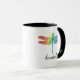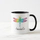 Caneca personalizada da libélula da aguarela do arco-íris silhueta lindo. Design em ambos os lados. Arco-íris das cores na aguarela, silhueta da libélula. Adicione o nome para personalizar. www.SamAnnDesigns.com