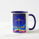 Mug in the zodiac sign Libra, symbolized by golden scales set against a deep blue starry sky, resting on colorful, dreamy clouds. The scales represent balance and harmony. The celestial scene reinforces Libra’s association with fairness, aesthetics, and cosmic equilibrium.