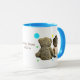 O cowboy russo e o ursinho têm o tema da caneca de café com bolinhas verdes e azuis. Adicione o nome do bebê na área de personalização.