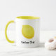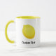Um limão amarelo inteiro. Cor de fundo personalizada. Texto personalizado de ambos os lados.