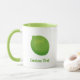 Um limão verde. Cor de fundo personalizada. Texto personalizado de ambos os lados.
