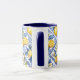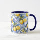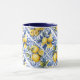 Azulejo de café, caneca, brilhante e bonito, do Mediterrâneo - azul-cobalto brilhante, amarelo, azul-claro, com limões no estilo de azulejo e arte de linho de Positano Itália. Presente prático para alguém que ama cerâmica em estilo italiano. (Há uma toalha e avental de cozinha correspondente.) Ver outra caneca de café de impressão do azulejo mediterrânico: https://www.zazzle.com/pretty_talavera_tile_all_over_print_lemons_mug-256288731119659494