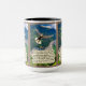 Linda Escritura da Águia Mug de uma cena colorida e detalhada com uma gloriosa águia-careca espalhando suas asas e voando alto no céu azul sobre um vale verde de pelúcia próximo aos pés de uma montanha. Esta cena acompanha o verso Bíblia, "Mas eles que esperam no LORD devem renovar sua força; eles devem montar com asas como águias; eles devem correr, e não estar cansados; e eles devem andar e não desmaiar." Isaiah 40:31. Esta Mug faz um presente maravilhoso ou pode ser usada para nos lembrar da Palavra de Deus.