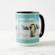 Linda Escritura de Pinguim Mug de uma colorida e detalhada cena ártica de neve de um padre Imperador Pinguin se dobrando para confortar um bebê Imperador Pinguim que está entre seus pés enquanto uma multidão de Imperador Pinguins caminha atrás deles. Esta cena acompanha o verso Bíblia 1 John 4:16, "Deus é o amor; e aquele morro de amor em Deus, e Deus nele." Esta caneca faz um presente maravilhoso ou pode ser usada para nos lembrar da Palavra de Deus.