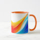 Caneca Linhas retro laranja e abstrato azul curvas