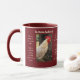 Esta caneca de dois tons é mostrada em um marrom com o interior do marrom e manipula com fotos de um galo de galinha branco em Rhode Island em ambos os lados da caneca, juntamente com comentários humorísticos sobre o que pode ser uma lista de baldes de galinha. Personalize este item ou comprar conforme projetado. Cores: branco, vermelho, castanho e marrom. Imagem de estoque www.freepik.com