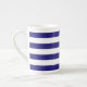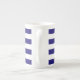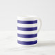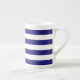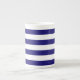 Recolha um grupo de canecas de café projetadas contemporâneas da porcelana de osso para usar-se para o senhor mesmo ou para dar como um presente. Misture e estilo e cores do fósforo para uma sensação ecléctico. As canecas de café fazem um presente agradável do housewarming ou o presente de casamento. Listras dos azuis marinhos e do branco.
