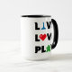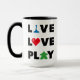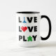 Caneca Live, Love, Tocar Texto Preto