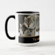 Esta caneca de café cerâmica é mostrada com uma impressão de foto de lobos selvagens no Parque Nacional de Yellowstone. Acentos bronzeados com interior preto e alça. Personalize este item ou comprar como está. Imagem do stock