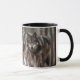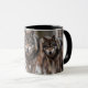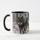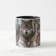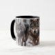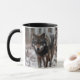 Esta caneca de café cerâmica é mostrada com uma impressão de foto de lobos selvagens no Parque Nacional de Yellowstone. Alça e interior pretos. Personalize este item ou comprar como está. Imagem licenciada