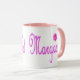 Apresentado é um logotipo bonito, roxo, com o nome Margaret, roxo e cor-de-rosa.