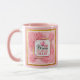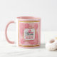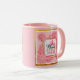 Color Palette: The design uses a harmonious blend of soft pinks, whites, and gold, complemented by the mug's matching pink handle and interior.