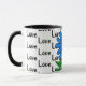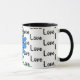 Bonito mão — margarida azul pintada com floral central amarelo. O amor é escrito em uma escrita negra por toda a parte. Arte original © TamiraZDesign.
