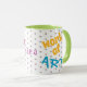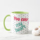 Bright and cheerful coffee mug to gift to someone special! This colorful mug features lots of hearts made of many little rainbow-colored hearts and the sweet message: “You color my heart like a work of art.” Perfect for gifting to your girlfriend, boyfriend, partner, best friend, or BFF, this vibrant heart mug adds a pop of color and warmth to any day. A wonderful gift idea for birthdays, Valentine’s Day, anniversaries, Christmas, or just because. The bright, cheerful hearts make it a unique and meaningful choice for lovers and friends alike. Give a gift that says you make my life more colorful.