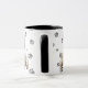 This mug for the French Bulldog owner features an artist's watercolor portrait of a beautiful white French Bulldog. The image is printed twice, and between them is an oval with the black text that says "Love my French Bulldog". The oval and dog images are placed on a background sprinkled with paw prints. You may easily change the text to something else, or personalize it, if you'd like.