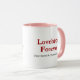 Personalize this charming mug with your name and your partner's name. The sweet design features two lovebirds perched on a branch with their tails forming a heart, paired with "Lovebirds Forever" in romantic red lettering, celebrating your eternal bond.