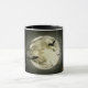 Branco e preto 11 oz. combo caneca com imagem de uma lua cheio luminosa, um corvo tocado numa silhueta de um ramo de árvore, e morcegos voando no céu noturno. Consulte pote de doces correspondente. Veja a coleção inteira de Halloween Mug na categoria HOME na seção HOLIDAYS.