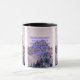 Esta caneca exibe a escritura bíblia "Luke 11:24" KJV em uma fonte exclusiva de impressão de BM Hanna com letras neon roxas mais citação bíblia sobre uma visão do lado da montanha de uma imagem que olha sobre uma cordilheira sob um céu claro nesta temática baseada na fé da bíblia KJV. A jante e o manípulo são vidrados em cores compatíveis, disponíveis em micro-ondas e máquinas de lavar louça de tamanho 11 onças ou 15 onças, construindo cerâmica segura.