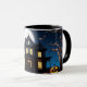 Ponha sua bebida favorita em estilo assustador com esta caneca de casa assombrada de Halloween! Apresentando uma cena noturna arrepiante com uma lua de cheio brilhante, árvores tortuosas, morcegos voadores e abóboras brilhantes de jack-o-lanterno, esta design estranha faz a perfeita caneca de café sazonal ou xícara de chá. Um presente de excelente para amantes do Halloween, fãs de casa assombrados, ou qualquer um que queira celebrar a estação assustadora com um toque de charme gótico. Ideal para festas de Halloween, manhãs de outono ou como decoração festiva de cozinha.