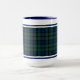 Mug de café com tartan para Clan MacCallum e suas sebes, incluindo Abercrombie e Challum. Padrão de xadrez Escocês azul-escuro, verde e preto, de 1770, com sotaques vermelhos.