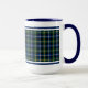 Uma caneca de café com tartan para Clan MacNeil e suas sebes, incluindo MacGuckin e Niall. Padrão negro, azul real escuro e verde florestal de xadrez escocesa de 1831, com ouro amarelo brilhante e sotaques brancos.