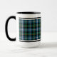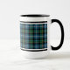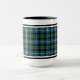 Mug de café com tartan de caça para Clan MacRae e suas sebes, incluindo MacGrath e Ray. Padrão de xadrez escocesa azul-claro, verde e preto de 1820, com sotaques vermelhos e brancos.