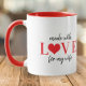 Text personalized typography script made with love for my wife funny cute quote red heart coffee mug.