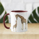 Um doce par de girafas, uma mãe e seu filhote, cumprimentando um ao outro em um momento delicado. Esta dupla de girafas são girafas rothschild, e faria um presente de excelente para um amante de girafa, amante de animais africanos, ou qualquer amante de os animais em geral.