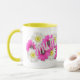 Celebre sua mãe com nossa design Mãe apresentando essas lindas flores cor-de-rosa e brancas bem organizadas em torno da mãe de texto projetada também em flores brancas. O Chaveiro, Mug e selo postal também apresentam um fundo verde-claro com corações cor-de-rosa de amor.
